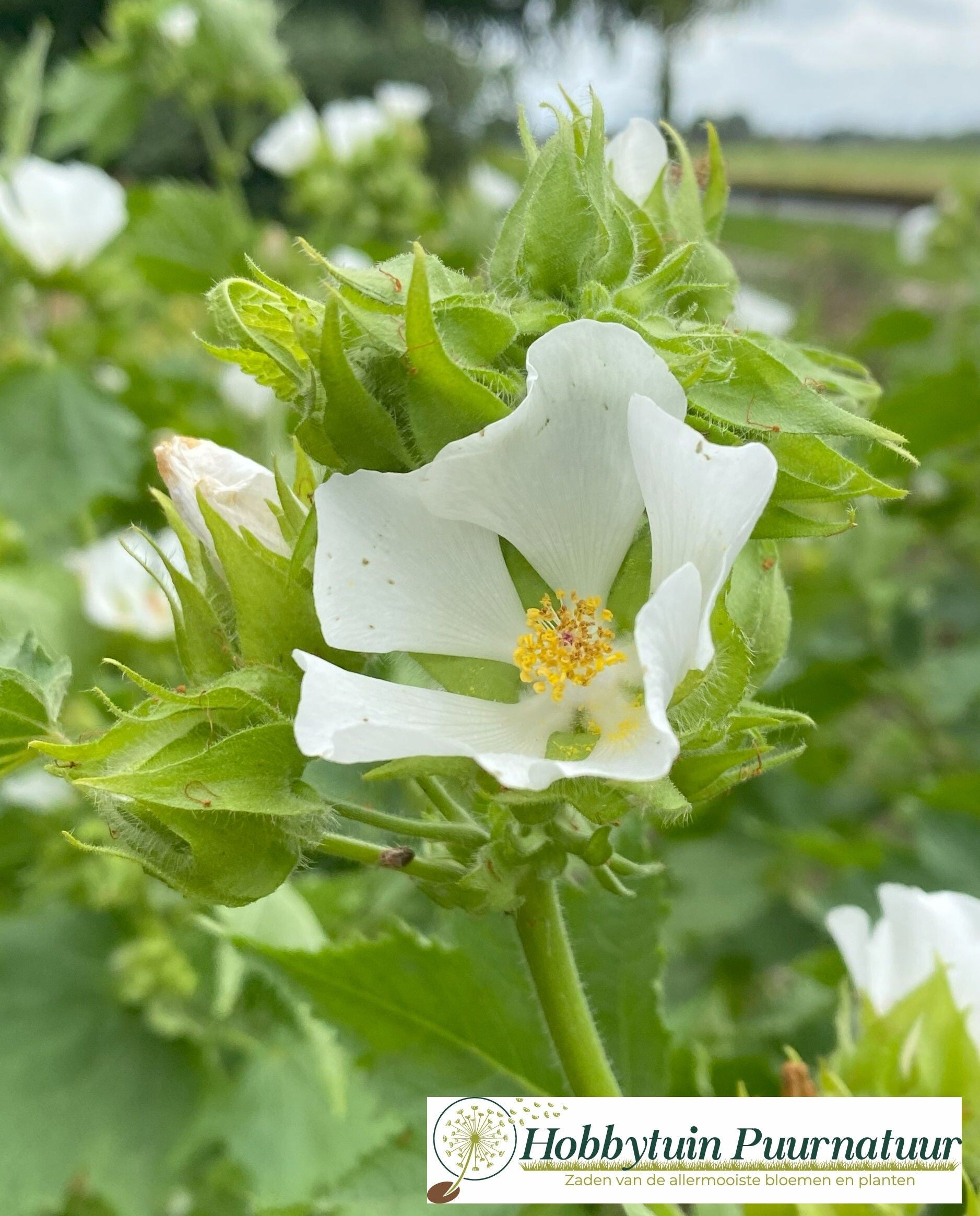 Als dan de helderwitte, stokroosachtige bloemen verschijnen in de maanden juni tot oktober ontstaat er een wonderschone plant!