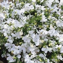 Deze eenjarige lobelia is een gemakkelijk te kweken plantje en bloeit lang en uitbundig met vele kleine, witte bloemetjes.