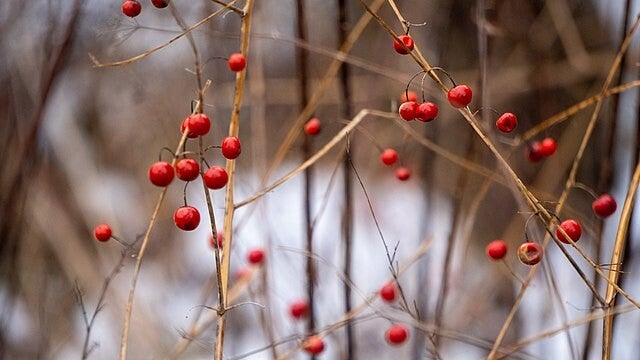 Vrouwelijke planten zijn later in het jaar te herkennen aan deze bessen.