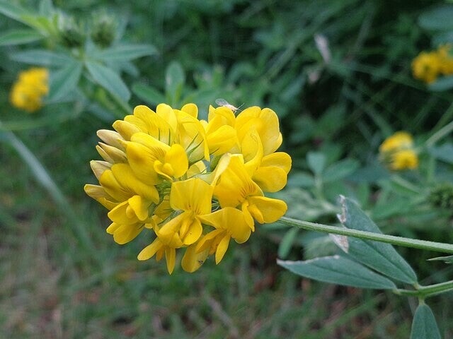 Medicago falcata bindt stikstof in de bodem en draagt bij aan een gezonde bodemstructuur.
