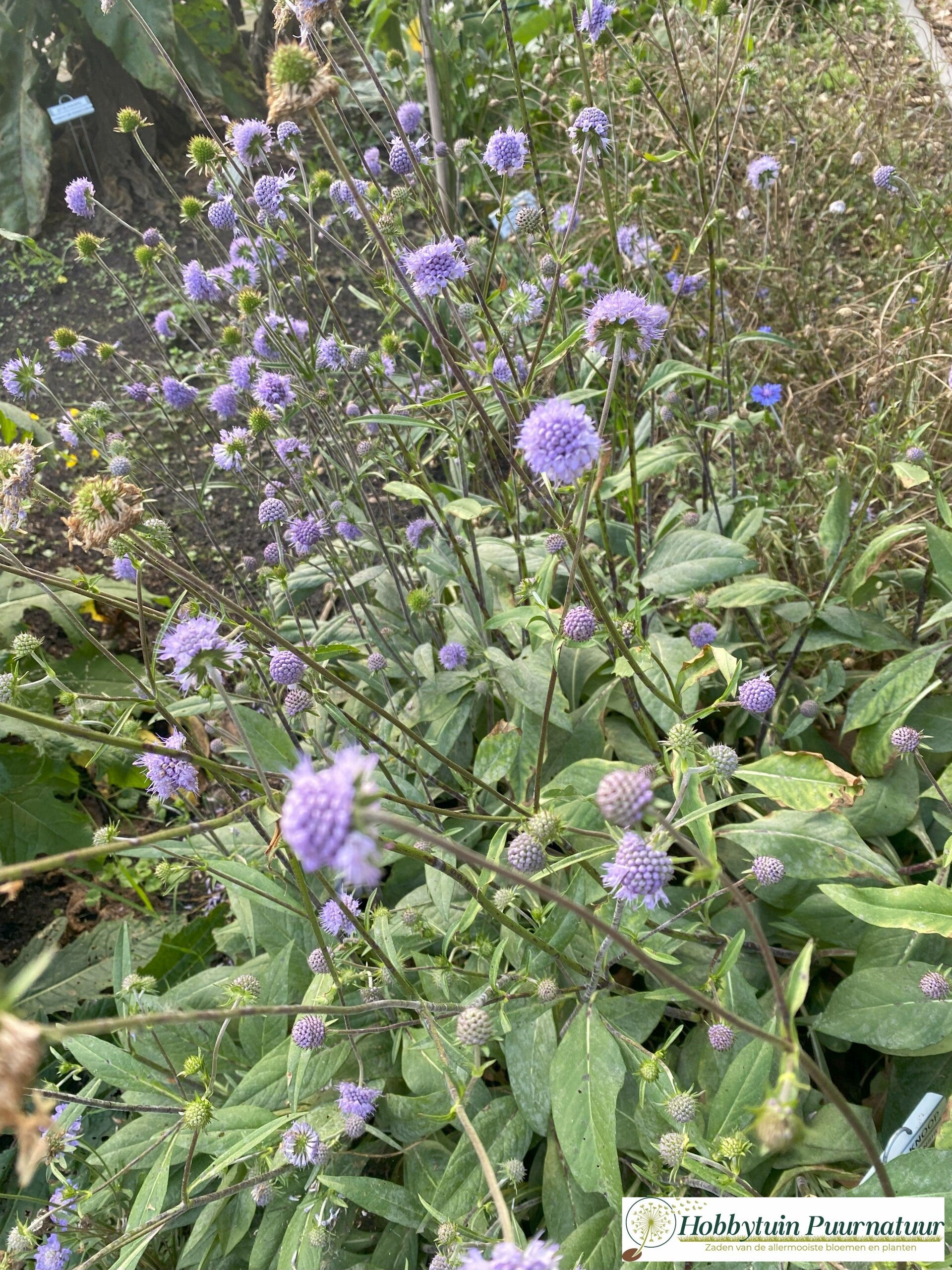 De bloemen zijn prachtig diepblauw van kleur en zien eruit als een soort (halve) knoop omdat de bloembodem plat is.