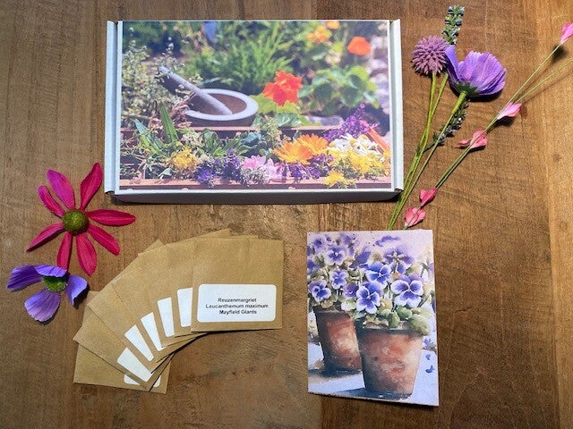 Dit kado-doosje bevat een 7-tal verschillende soorten zaden van vaste planten met veel verschillende kleuren.
